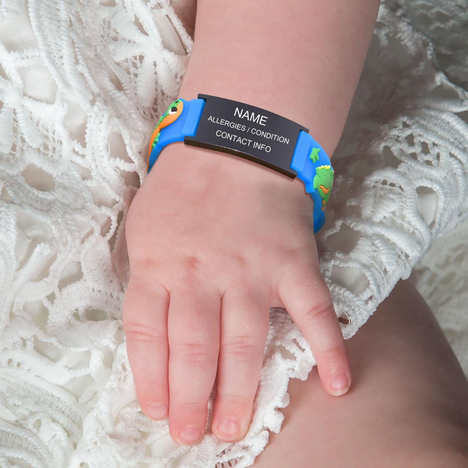 Prioritize your child's safety with the Personalized Cartoon Medical Alert Silicone Bracelet. It's not just an accessory; it's a tool that safeguards their well-being while sparking their imagination. Secure one now and grant your child the gift of safety with a smile.