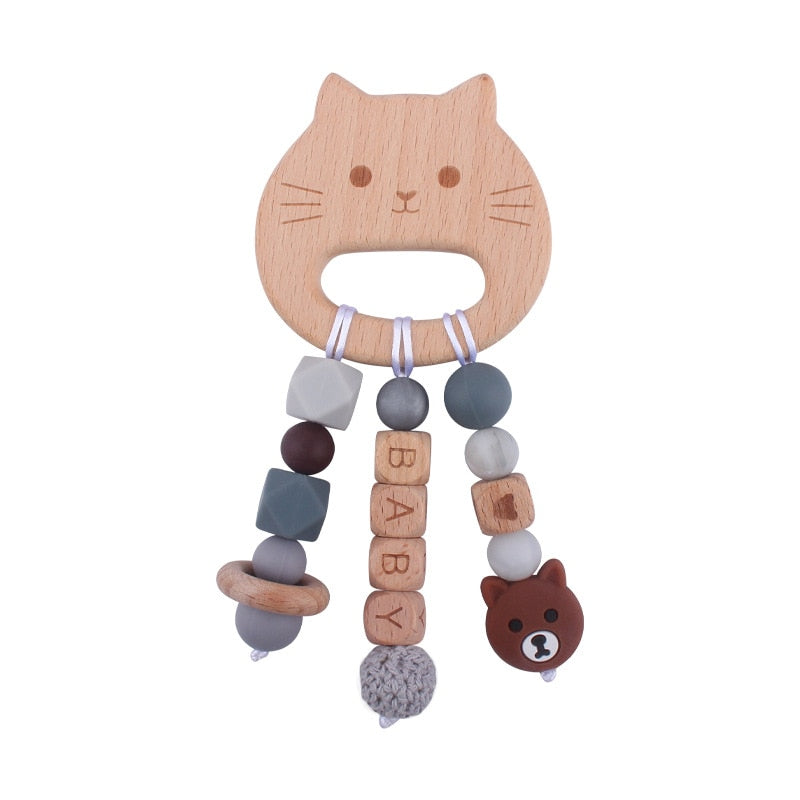 Personalized Name Sensory Baby Toy, Custom Fiddle Toy, Wooden Infant Toy, Silicone Ring For Baby, Baby Showers Gift, Gift For Newborn/Baby